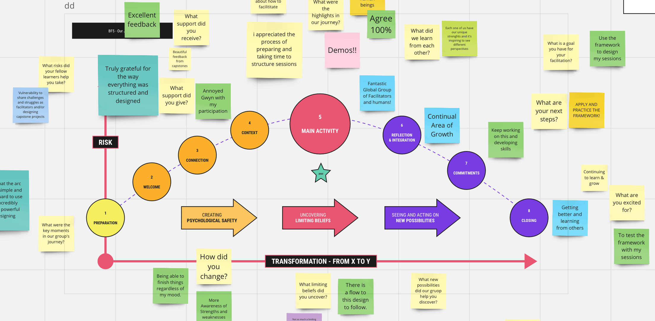 Then came the group reflection. I prepared a Miro board for the closing session with the Breakthrough Arc Framework that I teach in the course. We used the Arc to map our group journey together. This also gave us a visual artifact of the group experience.👇